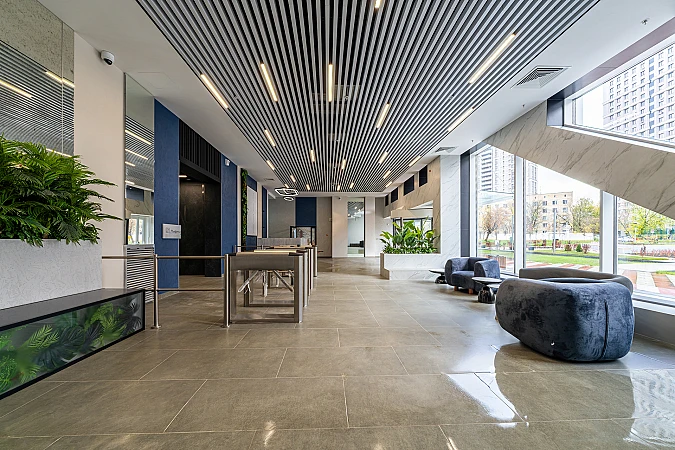 - Оптимальная глубина помещений (17 метров) обеспечивает отличное естественное освещение и эффективное использование офисного пространства