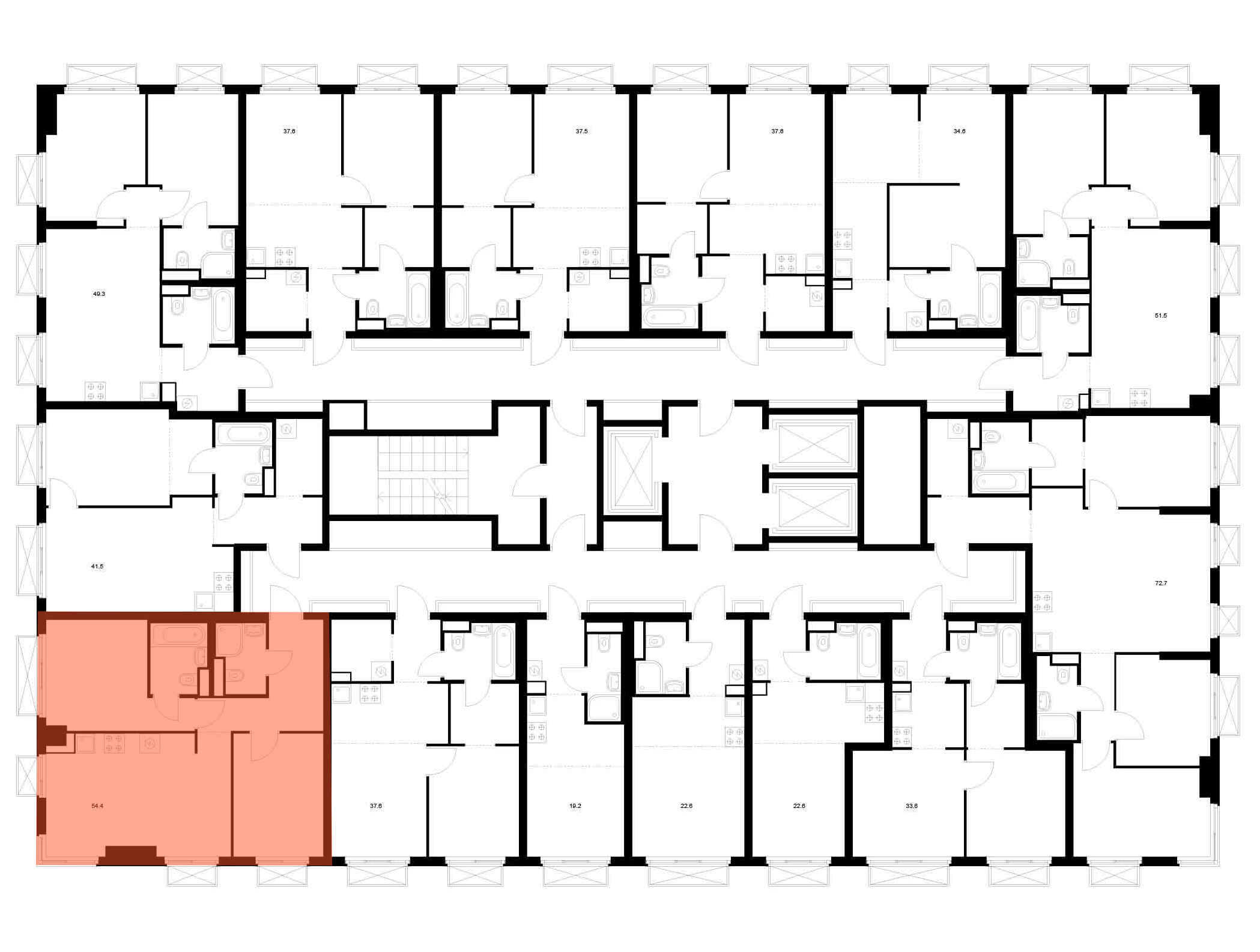 Продается 1-к. квартира номер 478 общей площадью 43.3 кв.м. на 12-м этаже 18 этажного дома, Корпус 8. Без отделки.