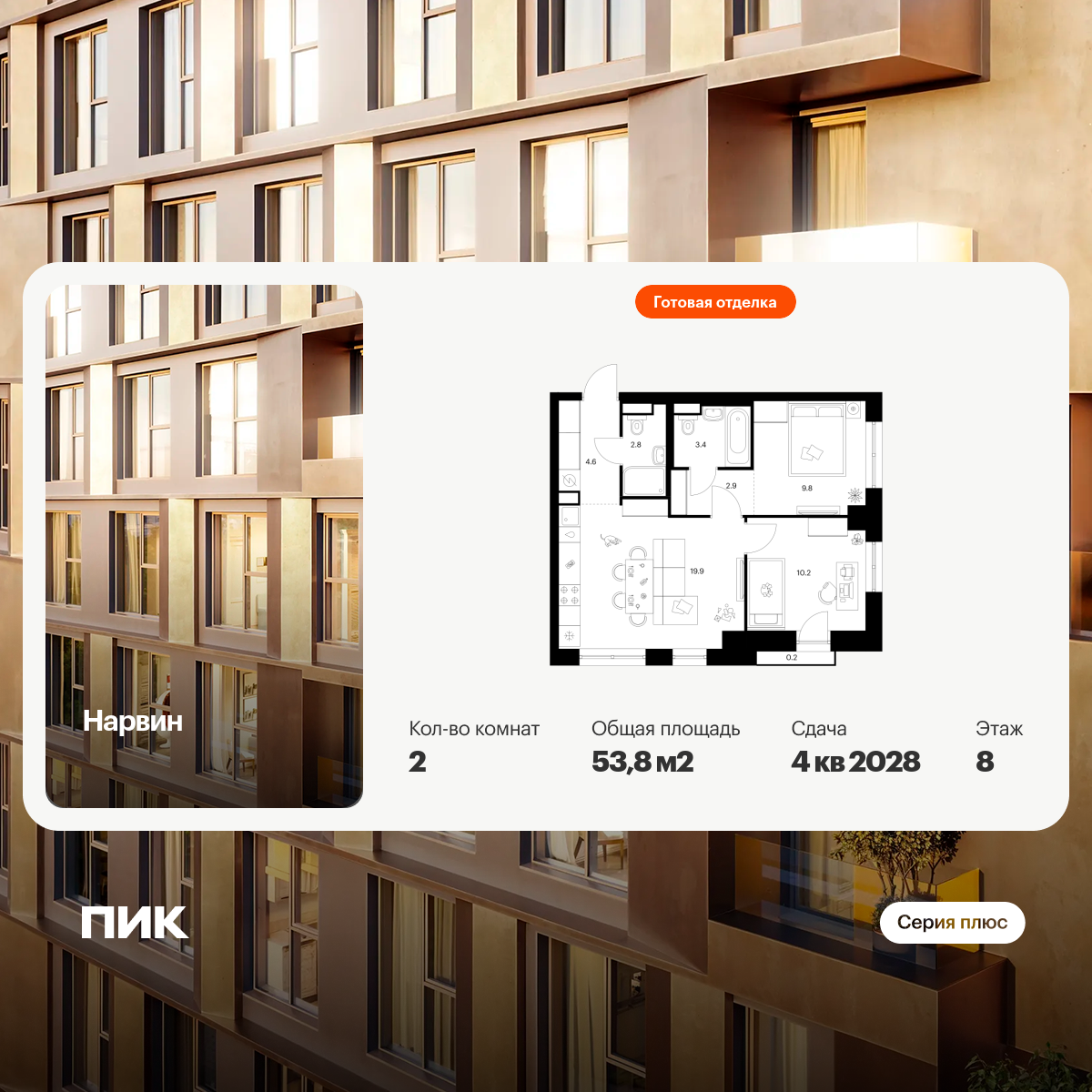 В проекте широкий выбор планировок с мастер-спальнями, кухнями-нишами, гардеробными и постирочными. Семьям с детьми понравятся квартиры со спальнями, разнесёнными по разные стороны гостиной. Мы предусмотрели множество вариантов остекления и балконов: есть планировки с панорамными и угловыми окнами, угловыми и классическими балконами. А для тех, кто хочет получить максимум пространства, есть квартиры с потолками до 5,3 метра. Артикул - 971751