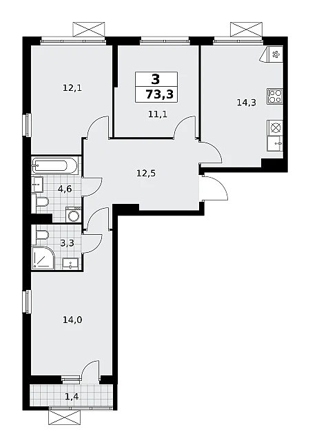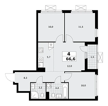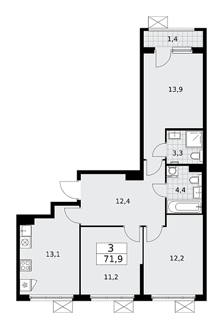 Купить 3к квартиру 68 м² в ЖК Ильинойс
