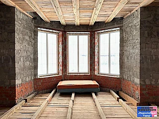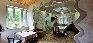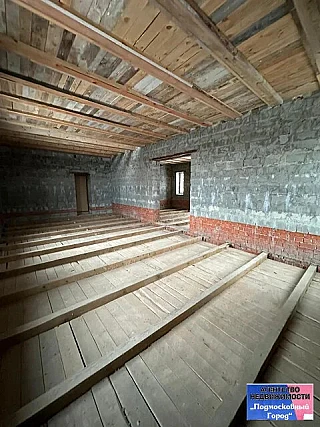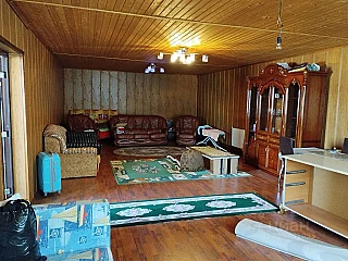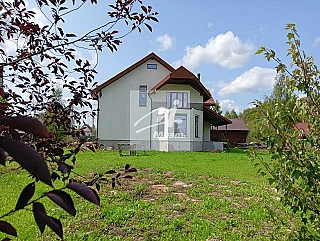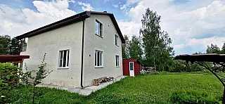 У дома кровля - оцинкованный лист, окна - двойные с деревянной рамой. В доме на первом этаже гостиная с русской печью, кухонная зона, две комнаты, с/у с душевой кабиной. На втором этаже три спальни, одна из них с камином. На третьем этаже две спальни. Много больших и маленьких кладовок. Дом полностью меблирован.