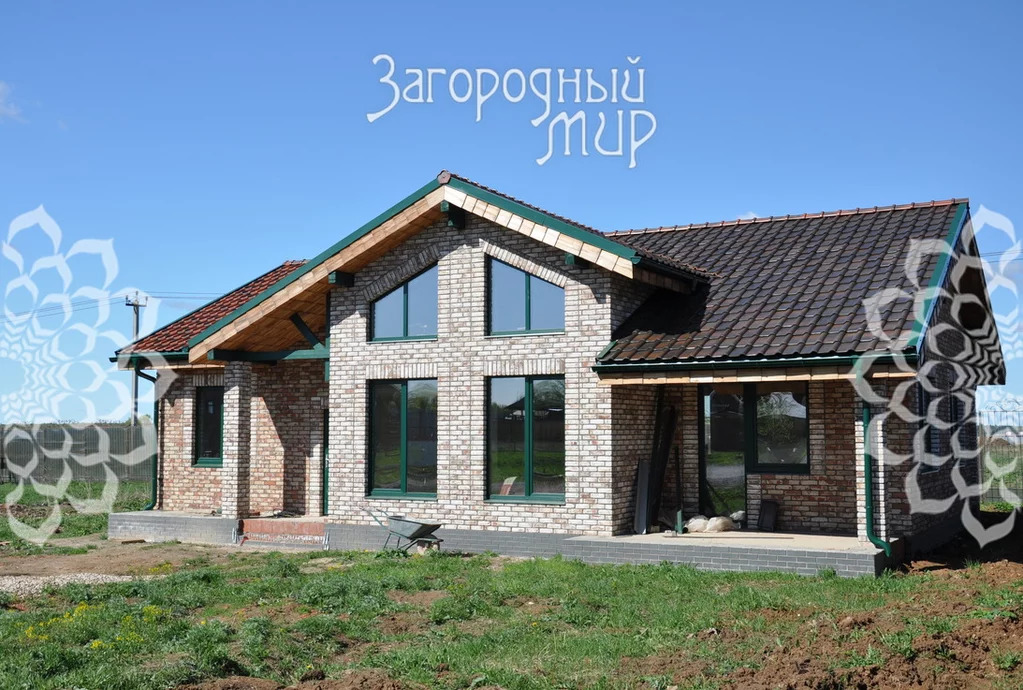 Дом построен с соблюдением всех строительных норм и правил из премиальных материалов: теплых керамических блоков "Кайман", немецкого облицовочного кирпича ручной формовки и немецкой натуральной керамической черепицы Roben. Толщина наружных стен 50 см. Детали фасада органично дополняют зеленые пятикамерные окна Rehau, водосточная система Aquasystem в цвет окон, в сопровождении карнизных свесов, подшитых гонтом, колотым вручную из алтайской лиственницы.