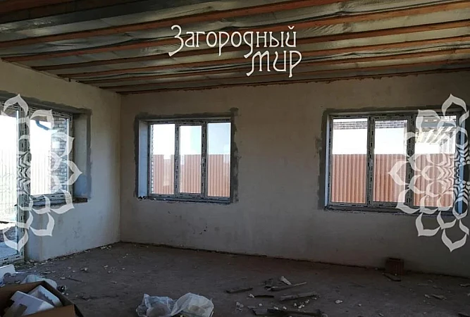 Цоколь выложен клинкерной плиткой. Всё собрано на итальянской арматуре и испанском сшитом полиэтилене. Стены оштукатурены, полы - стяжка. В доме запланированы: гостиная-кухня-столовая, 2 спальни, с/у, терраса. При желании можно выделить 3-ю комнату.