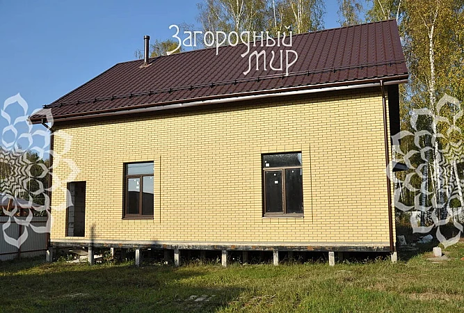 Лот 63481. Чехов. Репниково. Красивый новый дом площадью 180 кв. м без отделки в СНТ "Лесная Элегия" в 100 метрах от леса. Построенный из газобетонных блоков, дом внешне утеплен и отделан облицовочным кирпичом. Кровля – металлочерепица, окна – стеклопакеты Rehau 70.