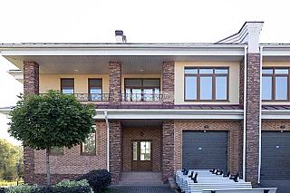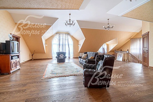 Добротный жилой дом с отделкой "под ключ" площадью 425 кв.м возведён из кирпича, утепллён и обложен кирпичом. Строили для себя из экологически чистых материалов, очень теплый. В доме 3 этажа, 4 уровня. Фундамент у дома блоки фбс, перекрытия железобетонные плиты, кровля металлочерепица, на окнах установлены деревянные качественные стеклопакеты. Внутренняя отделка стен - покрашены либо обои, напольное покрытие - плитка, дубовый паркет. В доме в цокольном этаже бильярдная, спортзал, теннисный стол, тир, вспомогательные помещения. На первом этаже гараж, зимний сад, сауна с купелью, холл, санузел, кухня-столовая, гостиная с камином. Из гостиной выход на участок к бассейну. Второй этаж включает в себя 4 спальни, гардеробную, балкон, санузел. С окон открываются прекрасные виды. На последнем этаже две спальни, кабинет, гардеробная и санузел.