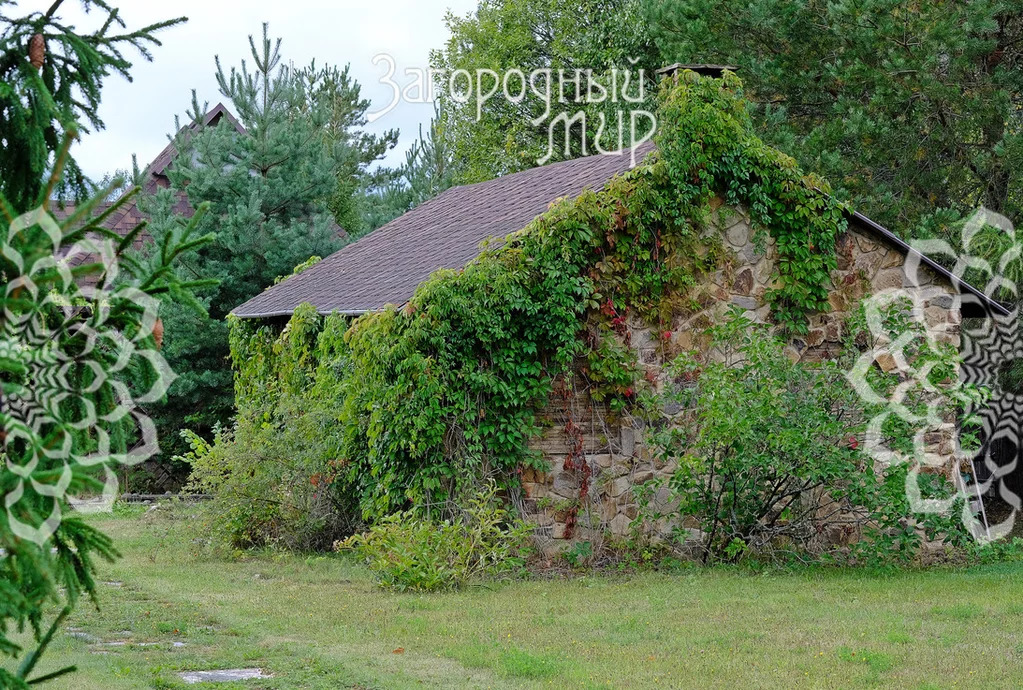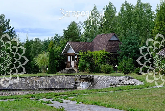Участок 2,5 га., огорожен высоким забором: русская баня-сруб (на дровах) с комнатой для проживания, большая беседка для барбекю, костровая площадка с чугунной чашей, теннисный корт, большой пруд и декоративный прудик, детский городок и батут, несколько фонтанов и хозяйственные постройки, парковка на 8 автомашин и вертолётная площадка.
