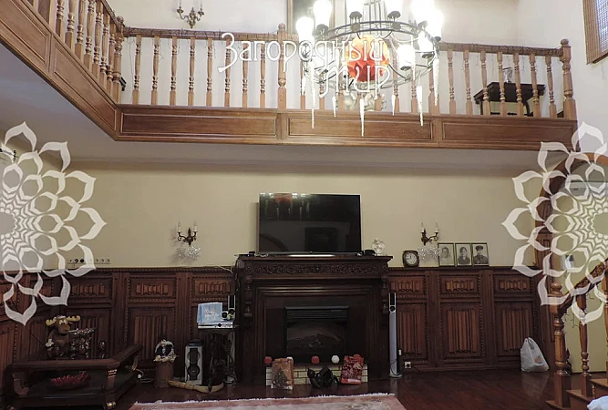 В доме на трёх этажах обустроены 3 кухни, 5 туалетных комнат и 4 ванные/душевые комнаты, 8 спальных комнат, теплые коридоры из гаража, терраса с панорамным видом на реку и поле на крыше дома, гардеробные, постирочная, тренажерный зал, зимний сад, просторная гостиная со вторым светом и электрокамином, бильярдная.