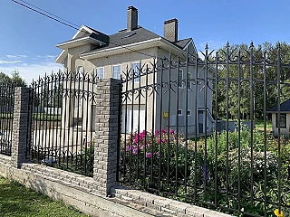 На участке - русская баня на дровах с душевой и зоной отдыха; зона барбекю; крытая терраса для отдыха; домик с русской печью; бассейн; огороженная сеткой баскетбольная площадка; 4 уличных и 2 теплых парковочных места, закрытый склад и место для хранения дров.