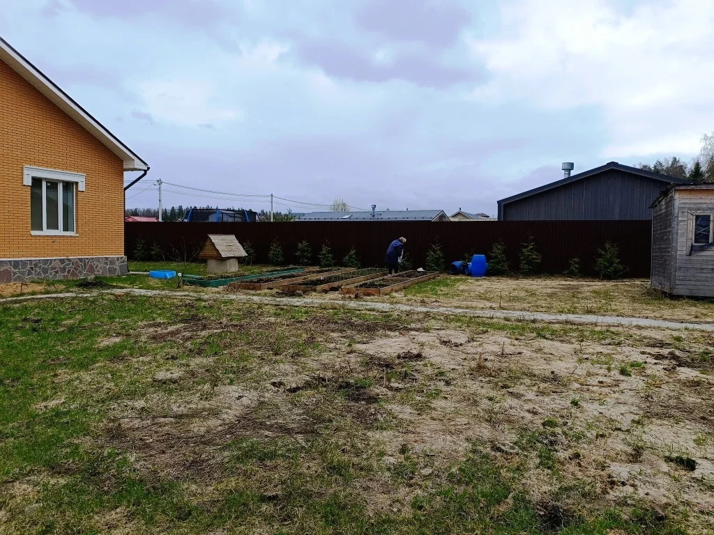 На участке 15 соток: гараж, хозблок, беседка, барбекю, детская площадка, садовые деревья. ЛПХ. Участок огорожен капитальным деревянным забором с кирпичными столбами.