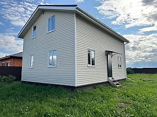 У дома стены - бревно, кровля – шифер, окна – пластиковые стеклопакеты. В доме уютная гостиная с камином, кухня с русской печью, спальня с выходом на балкон, веранда, кладовые. Дом полностью меблирован, оборудован техникой.