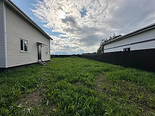 Участок 8,5 соток (возможно увеличение участка): баня из бревна (вода подведена), беседка, две теплицы, дровник с дровами, посажены фруктовые деревья, кусты, цветы, есть грядки, бетонные дорожки. Участок ровный, огорожен забором из металлопрофиля и сетки, граничит с лесом, рядом прогулочная дорожка до п. Киевский.