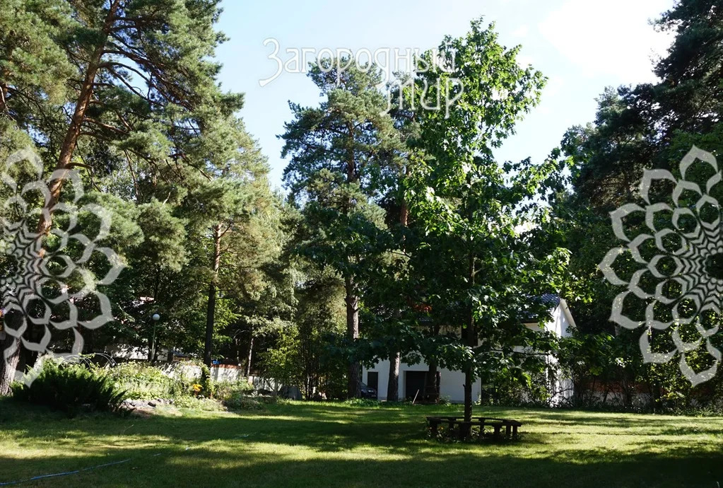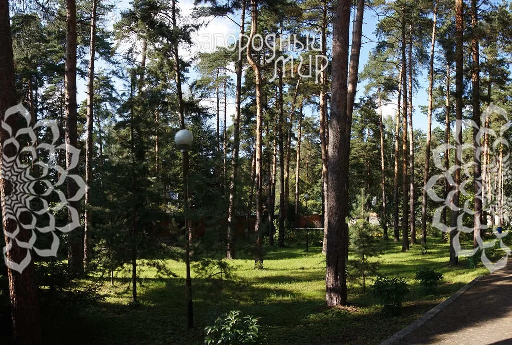 Участок 30 сот. здорового леса со своим микроклиматом и обитателями (дятлы и белки), имеется ландшафтное освещение. На участке расположен гараж с подвалом и вторым этажом для прислуги, декоративный прудик.