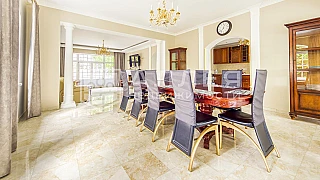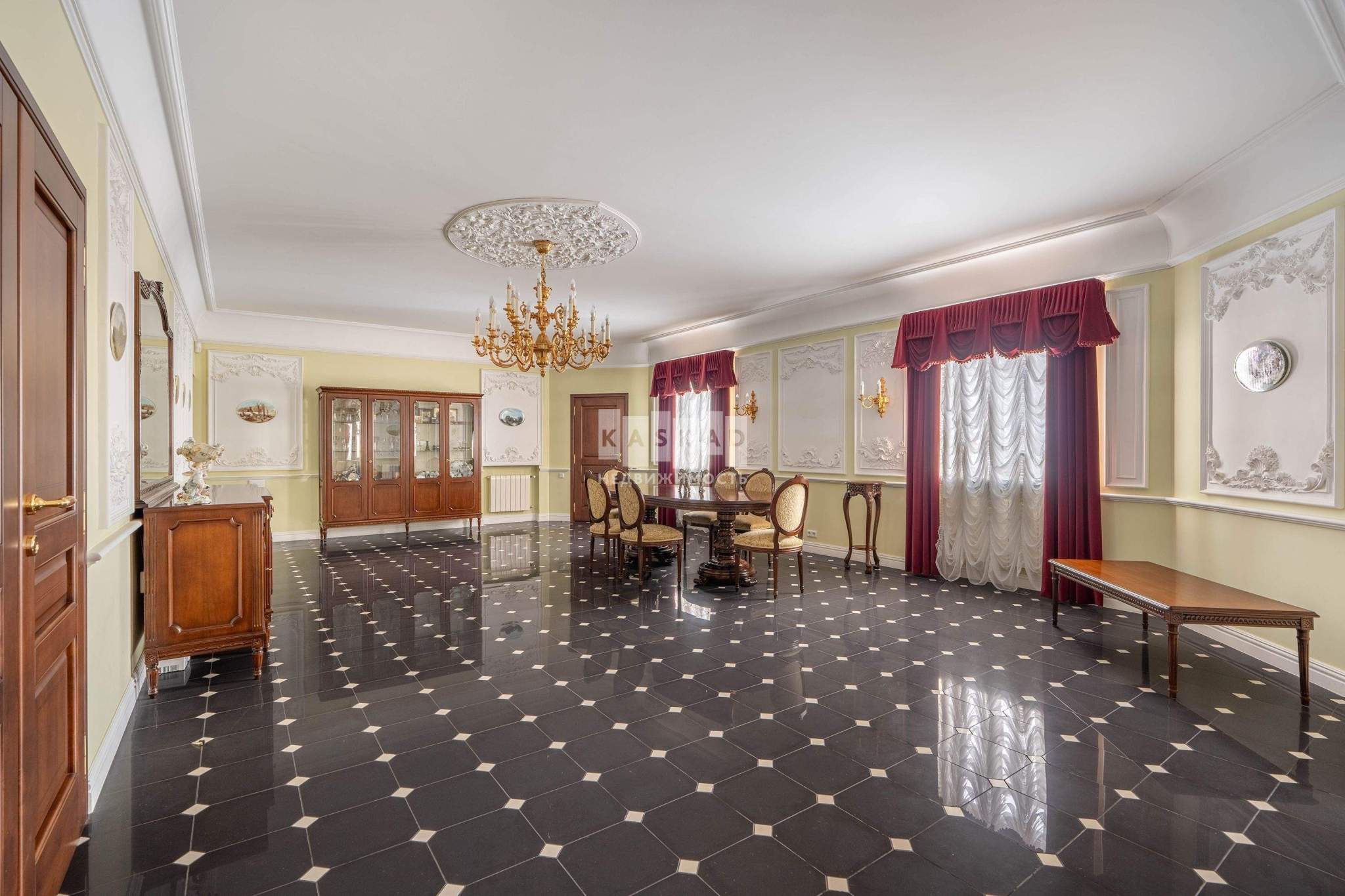 Добротный дом, выполнен из кирпича, внешне оштукатурен и покрашен. Общая площадь дома 729 кв.м, по документам жилая 154 кв.м. Возведен по индивидуальному проекту с применением качественных материалов, оригинальная многоуровневая планировка, светлые помещения. Фундамент - монолитный ленточный, ж/б перекрытия, кровля - металлические листы. В доме уютная гостиная, камин, 5 спален, сауна, зимний сад, 7 санузлов, бильярдная, кабинет, спортзал, кинозал, библиотека, два балкона (19 кв.м и 9 кв.м). Имеется встроенная кухня, минимально необходимая мебель. В светлом доме 4 уровня, на полу плитка, в спальнях паркет, высокие потолки, удобная лестница, в доме необходимо делать ремонт.