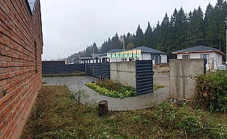Участок 8 соток огорожен забором из металлопрофиля, есть домик для обслуживающего персонала. Коммуникации: магистральный газ, электричество 24 кВт, колодец, септик.