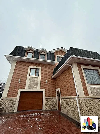 Дом построен на плите. Фасад оштукатурен и выложен дорогой плиткой. Есть прекрасный подвал по всему периметру дома глубиной 1,5 метра. Крыша из дорогого материала. Все коммуникации централизованные: вода, электричество, газифицированный дом.