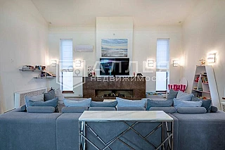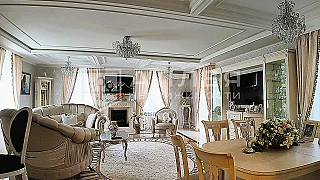 В доме 6 комнат: 4 спальни, большая гостиная с современным камином, кабинет и кухня. Удобные лестницы с дизайнерскими коваными перилами, отделанные дубом, придают дому величие и великолепие. Просторная прихожая с деревянными потолками в классическом стиле. Везде дубовые встроенные шкафы. Все из дорогих, добротных материалов – камерно, без излишеств. Серьёзно продумана входная группа. На каждом этаже санузел.