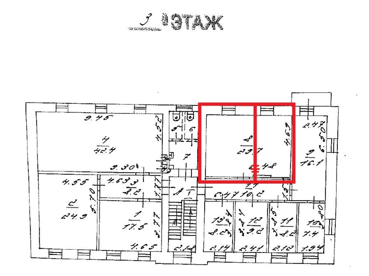 В аренду от собственника предлагается офис на 3-м этаже (29,70 кв.м.).