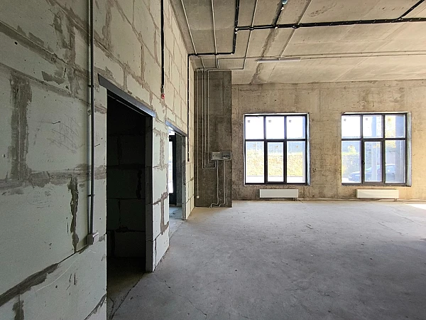 Объект в новом монолитном доме. Большие витражные окна, высокие потолки