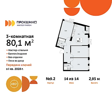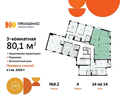 Продается 2-комнатная квартира от застройщика: общая площадь 73.70 м, жилая 30.50 м, кухня 23.30 м, 2-й этаж, жилой квартал «Гордость», корпус 36 (секция 5) . Срок сдачи: 2 квартал 2029 года.