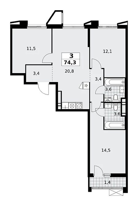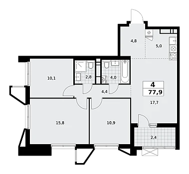 Продается 2-комнатная квартира от застройщика: общая площадь 78.10 м, жилая 39.80 м, кухня 18.70 м, 18-й этаж, жилой квартал «Гордость», корпус 36 (секция 4) . Срок сдачи: 2 квартал 2029 года.