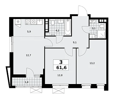 Продаётся 1-комн. квартира от застройщика: общая площадь 42.60 м, жилая 14.70 м, кухня 19.20 м, 19-й этаж, жилой квартал «Остров 12», корпус 3 (секция 1) . Срок сдачи: 1 квартал 2029 года.