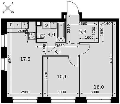 1 совмещенный санузел. В жилой зоне 2 больших окна на одну сторону, хорошая инсоляция.