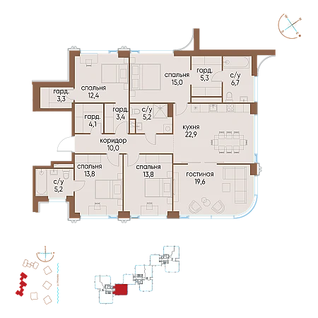 Продаётся 4-комн. квартира от застройщика: общая площадь 123.30 м, жилая 50.20 м, кухня 37.10 м, 4-й этаж, жилой квартал «Остров 12», корпус 1 (секция 2) . Срок сдачи: 1 квартал 2029 года.