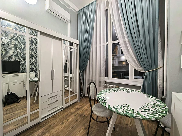 Внутри выполнена стильная отделка в светлых тонах с использованием современных материалов, установлены новые инженерные коммуникации и противопожарная сигнализация. Помещение отлично освещено за счет высоких панорамных окон, высота потолков 3,80 метров.