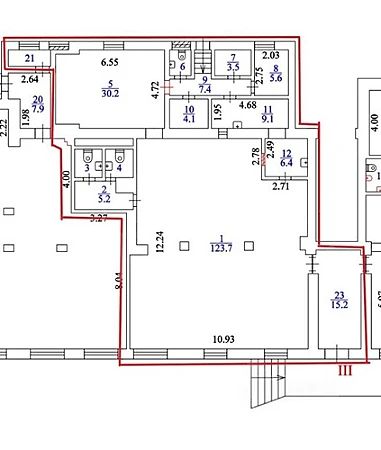 Два зала: 123,7 м² + 30 м² для гибкого зонирования