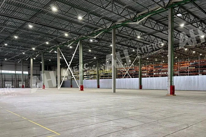 Потолок 10 м, шаг колонн 6х10 м, грузовые лифты 1,5 тонн. Погрузочная зона докового типа. Офисные помещения, сан узлы, мини-кухня (с готовой отделкой).
