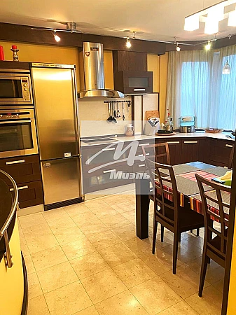 Квартира оборудована мебелью и бытовой техникой. Имеется изолированная спальня, три спальных места - два дивана + двухспальная кровать. Эскиз фактической планировки квартиры для информации представлен как фотография. Просторная кухня с эркером 13 кв.м, оборудованная всей необходимой бытовой техникой, совмещена с гостиной комнатой. Санузел совмещен с ванной комнатой в едином пространстве с матовым окном на кухню. В спальне два источника дневного света - застекленный балкон и эркер около шкафа, что видно на фото спальни.