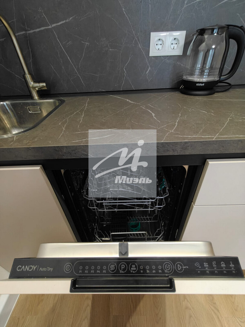 Квартира оборудована всем необходимым для комфортной жизни: уютный диван, легко превращающийся в кровать, телевизор, кухонный гарнитур, электроплита CANDY, холодильник CANDY, чайник, стиральная машина INDESIT, посудомойка CANDY, бойлер, прихожая.