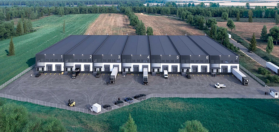 9-12 а/м места парковки (легковые и грузовые) Светодиодное освещение склада Цифровая навигация на фасаде. Декоративное озеленение.