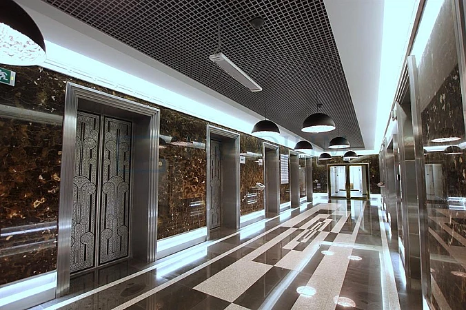 Приточно-вытяжная вентиляция. Центральное кондиционирование. Пожарная сигнализация. Электрическая мощность: 70кВт. Интернет, телефония. Охрана. Видеонаблюдение. Система контроля доступа. Лифты: Shindler. Подземная парковка.