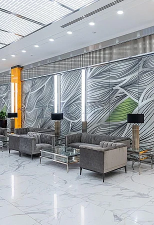 Развитая инфраструктура бизнес-центра - кофейни, аптечный пункт, отделы банков, фитнес-клуб, магазины, столовая и т.д.