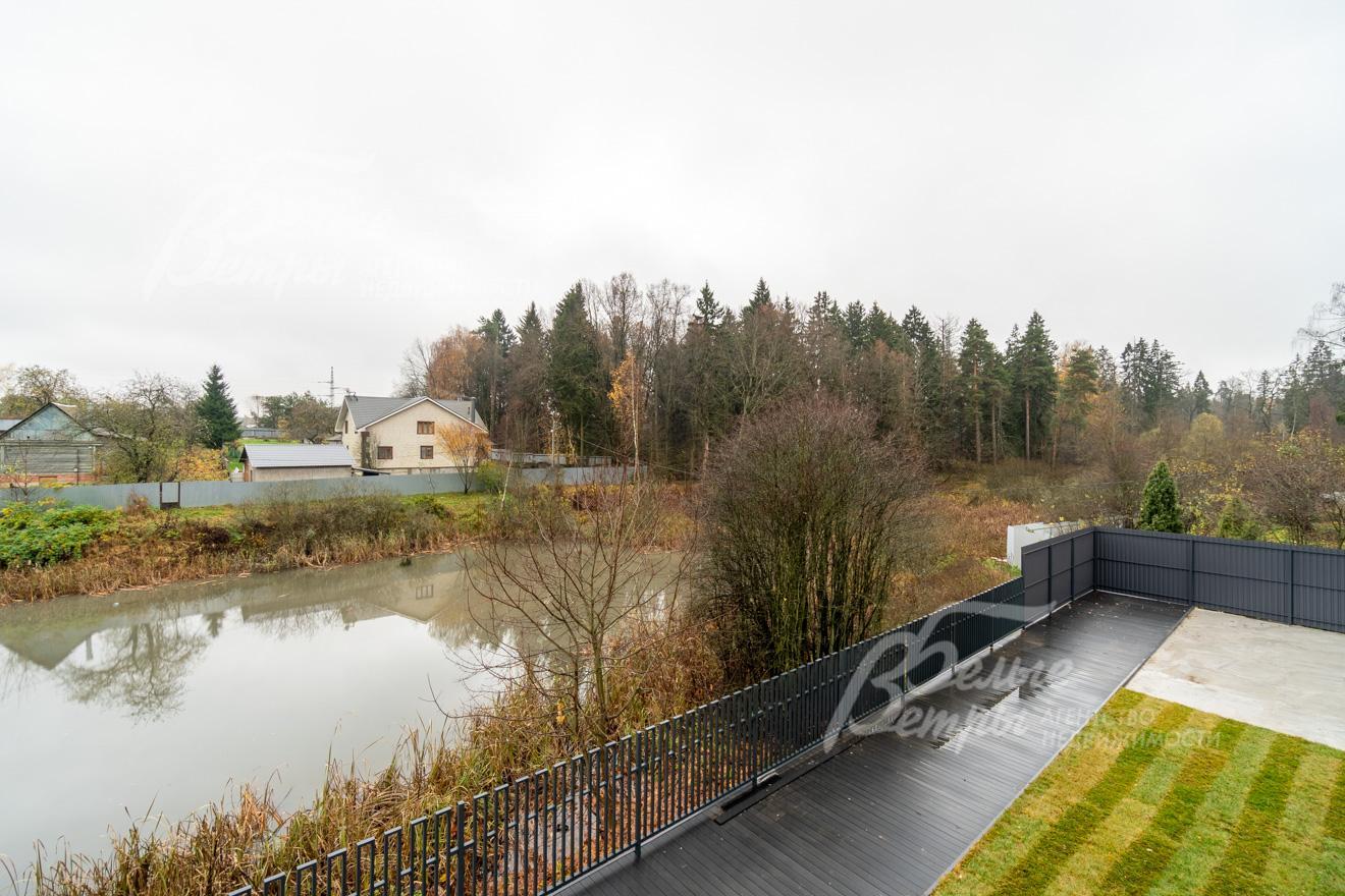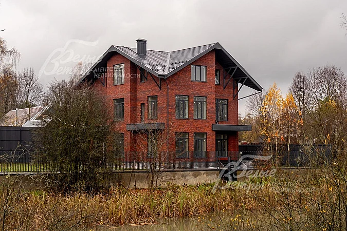Дом у пруда под отделку, построенный в современном стиле по высоким стандартам качества, облицованный дорогостоящим клинкерным кирпичом. В комфортной планировке габаритные окна, высокие пололки, 9 спален (одна из них на 1-м этаже), жилой мансардный этаж с большими вертикальными окнами, терраса. С трёх балконов открывается панорамный вид на пруд и природные окрестности. Дом стоит на участке, подготовленном к реализации проекта ландшафтного дизайна, с собственным выходом к водоёму: прибрежную зону можно облагородить. На участке высажен газон, забетонированы дорожки, сохранено несколько берёз. В пешей доступности магазины и остановки общественного транспорта.