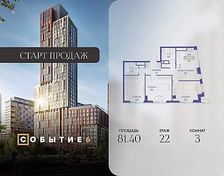 Продается 3-комнатная квартира от застройщика: общая площадь 91.10 м, жилая 42.60 м, кухня 17.60 м, 4-й этаж, жилой квартал «Вдохновение», корпус 34 (секция 1) . Срок сдачи: 4 квартал 2027 года.