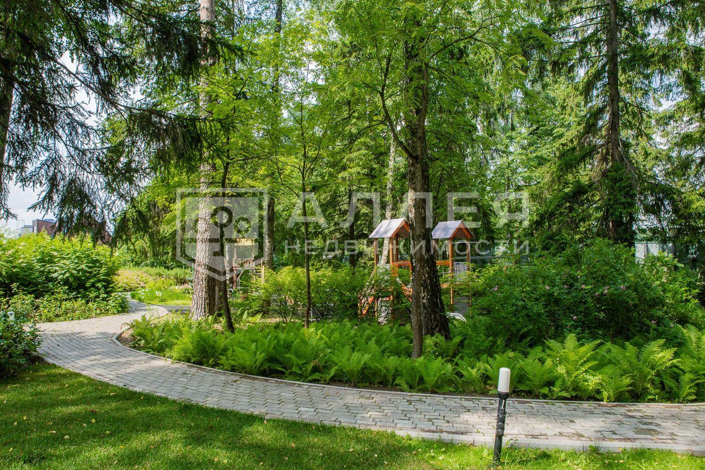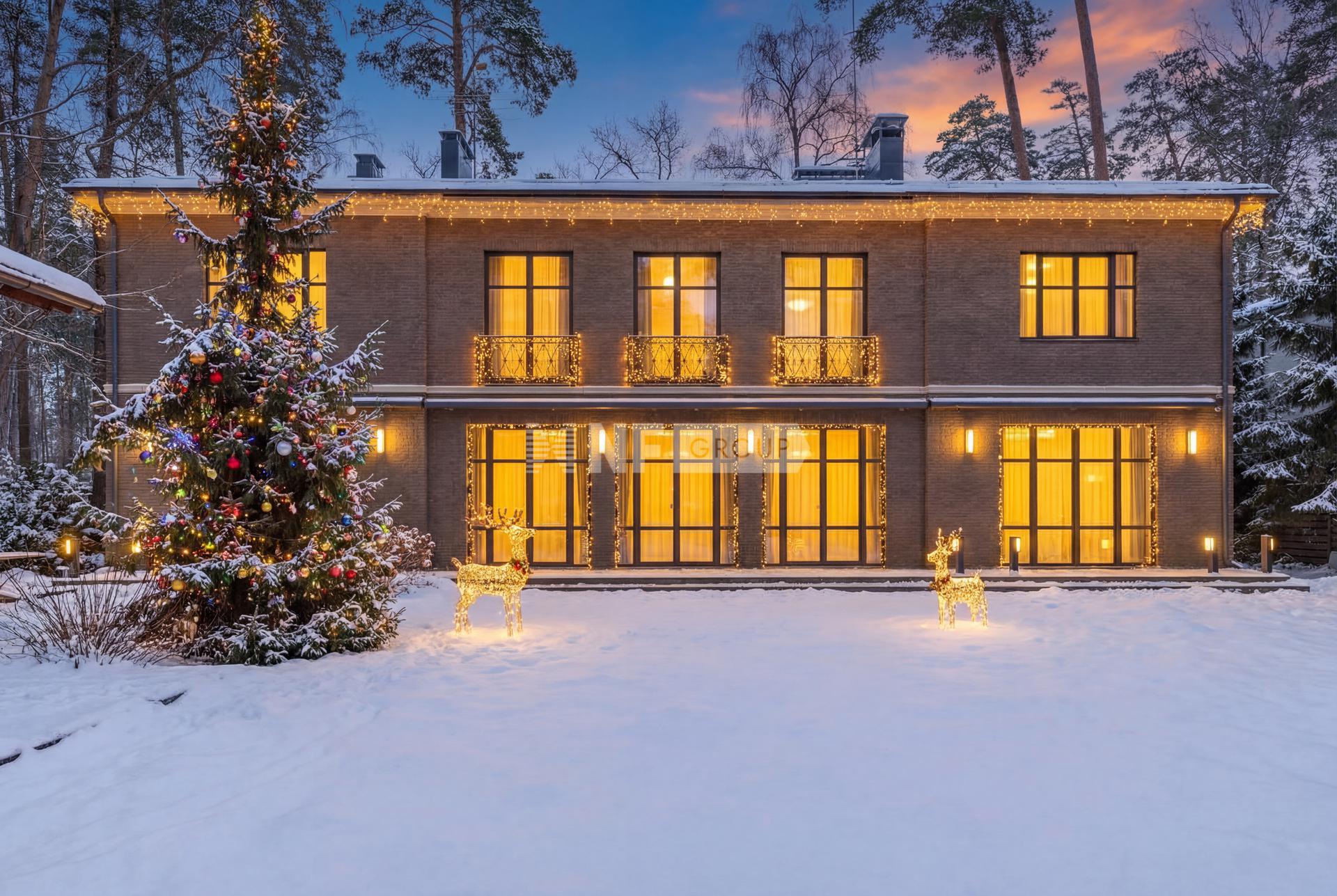 Участок расположен в самой высокой точке посёлка, таким образом обеспечивая живописный панорамный вид. На территории участка выполнен ландшафтный дизайн с установленными системами освещения, всесезонного подогрева и современной системой водоотвода.