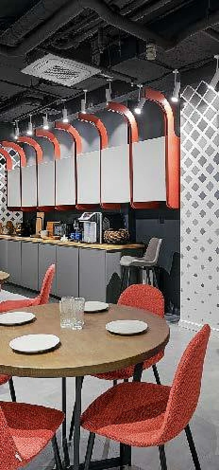 В каждом блоке есть рабочая зона open space, кухня, санузлы, серверная.