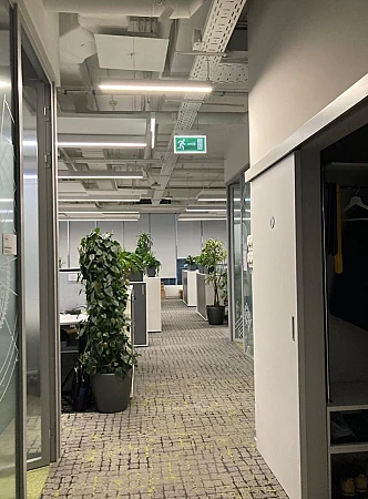 Удобная функциональная планировка. Есть зона отдыха и кухня, несколько переговорных комнат, оборудованная кухня и сан. узлы. Выход на террасу.