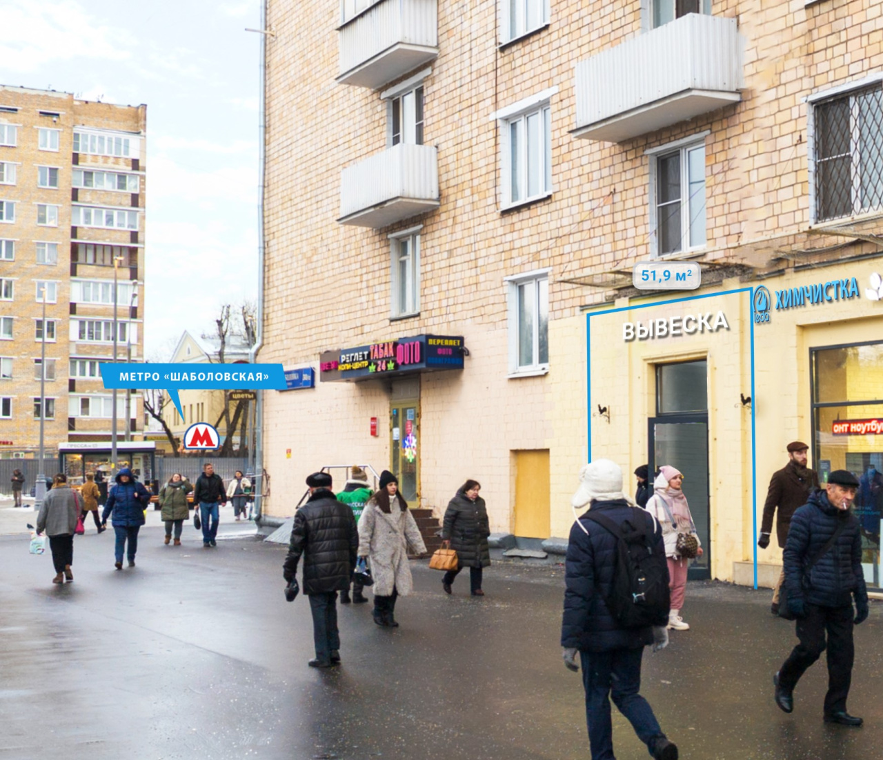 ПОКАЗ В УДОБНЫЙ ДЕНЬ И ЧАС. Агентам платим вознаграждение за клиента. Здание расположено у выхода из станции метро Шаболовская. Интенсивные пешеходный и автомобильный трафики. Развитая инфраструктура, крупный жилой район. Описание помещения: Отдельный вход в помещение с фасада дома.