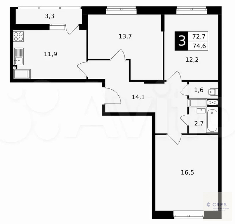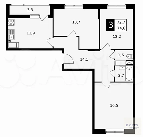 Купить 3к квартиру 74 м² в ЖК Красная горка