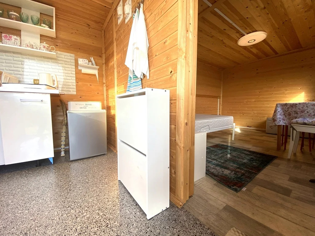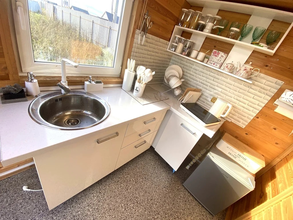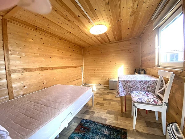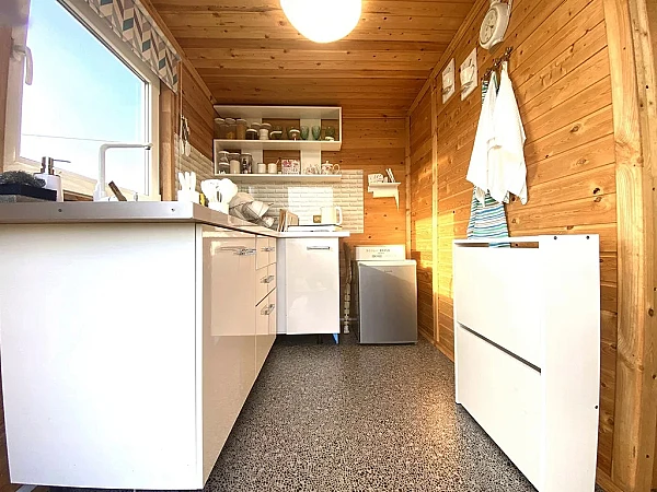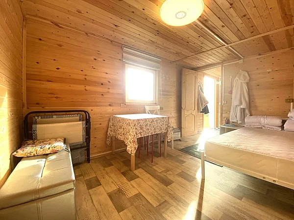Отдельным строением построили санузел, вода заведена от скважины, горячая от бойлера. На участке есть ещё хозяйственное помещение, каркасно-щитовой дом с утеплением. Можно при необходимости использовать как гостевой. С ранней весны до поздней осени здесь есть всё необходимое для комфортного проживания.