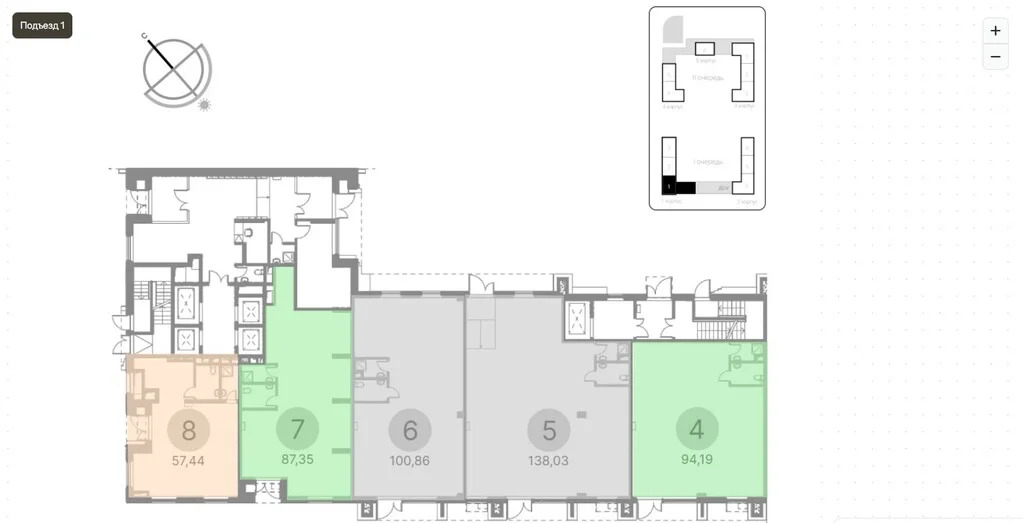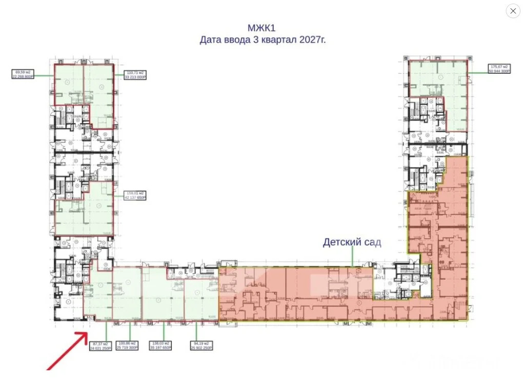 ЖК "Дюна", Жилой комплекс бизнес-класса. Предлагается к приобретению помещение свободного назначения формата Street Retail, площадью 87, 35 кв. м., расположенное на первом этаже жилого дома (корпус 1).