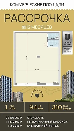 ЖК "Дюна", Жилой комплекс бизнес-класса. Предлагается к приобретению помещение свободного назначения формата Street Retail, площадью 94, 19 кв. м., расположенное на первом этаже жилого дома (корпус 1).