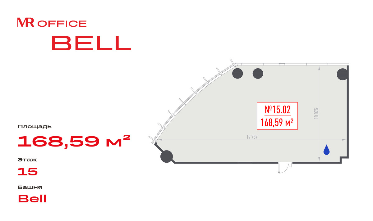 Продается офисное помещение 168.59 кв.м на 15 этаже в новом небоскребе класса Prime — БЦ BELL на Белорусской от бренда MR Office.