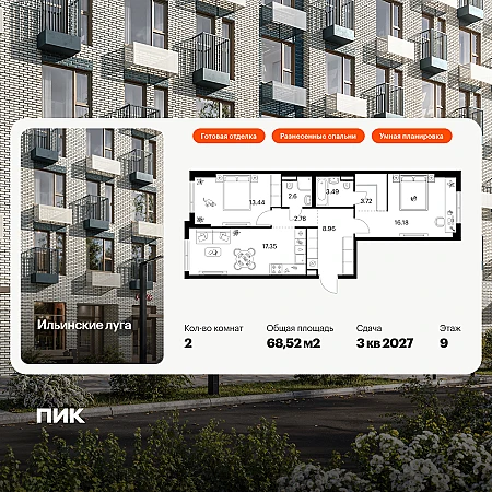 Купить 2к квартиру 65 м² в ЖК Новое Медведково