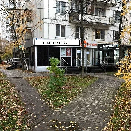 Фасад с огромной витриной, отдельный вход и витрина смотрят на улицу Народного ополчения.