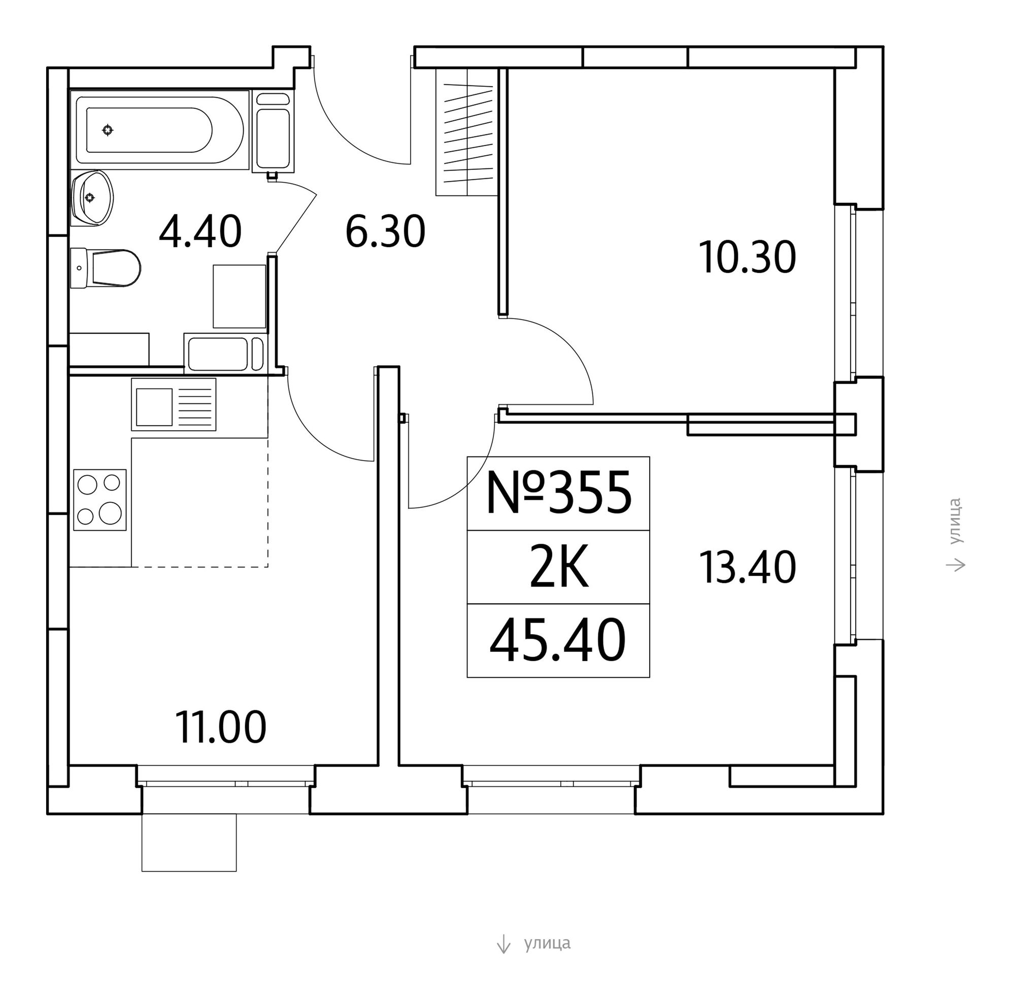 Купить 2к квартиру 45 м² в ЖК Облака 2.0