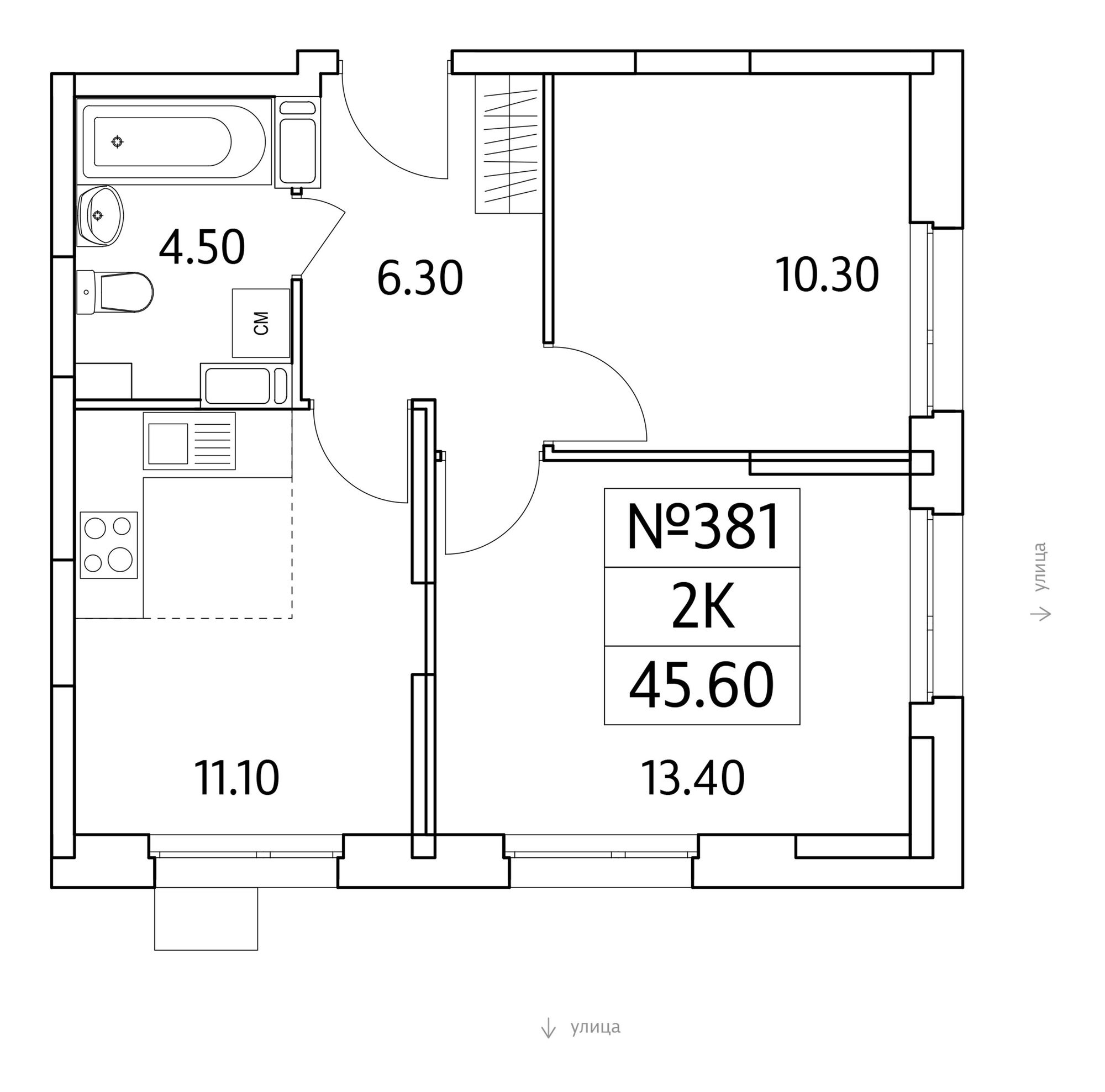 Купить 2к квартиру 45 м² в ЖК Облака 2.0